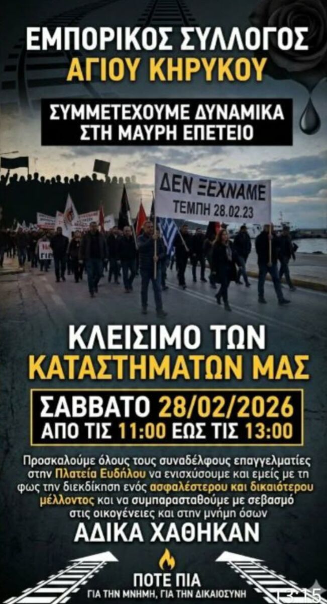 28/2/2026…. 3 ΧΡΟΝΙΑ ΑΠΟ ΤΟ ΕΓΚΛΗΜΑ ΣΤΑ ΤΕΜΠΗ