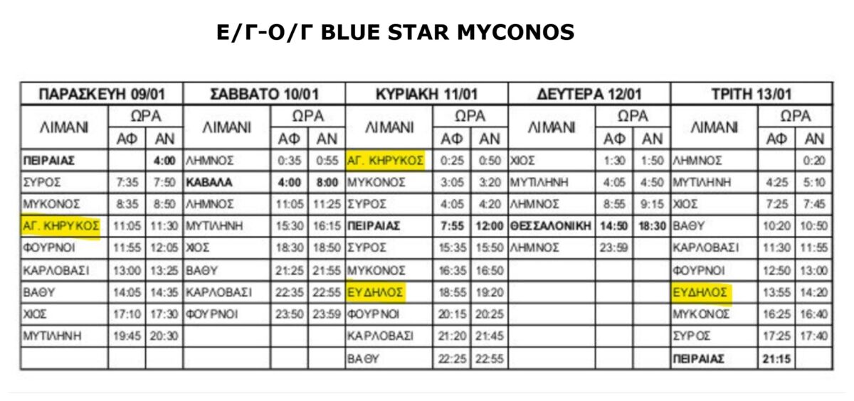 Τα δρομολόγια ενδέχεται να τροποποιηθούν και οι αλλαγές γνωστοποιούνται μέσω των επίσημων ιστοσελίδων της εταιρείας: https://www.bluestarferries.com/ και https://www.hellenicseaways.gr/