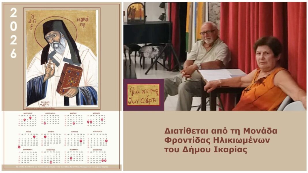 Το ημερολόγιο του 2026 δημιουργήθηκε όπως ακριβώς ξεκίνησε. Ως μια απλή, χειροπιαστή πράξη στήριξης στη Μονάδα Φροντίδας Ηλικιωμένων του Δήμου Ικαρίας, που περνά από χέρι σε χέρι, βρίσκει θέση σε κάθε ικαριώτικο σπίτι και μέσα από τη συνέπεια και τη συμμετοχή πολλών, καταλήγει εκεί όπου η ανάγκη για φροντίδα είναι σταθερή.