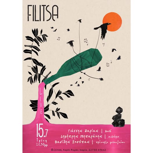 Το αγαπημένο στέκι Filitsa στις Κάρες Ραχών υποδέχεται τρεις δεξιοτέχνες για ένα καλοκαιρινό live με αυθεντικό ήχο και ιδιαίτερο ύφος.