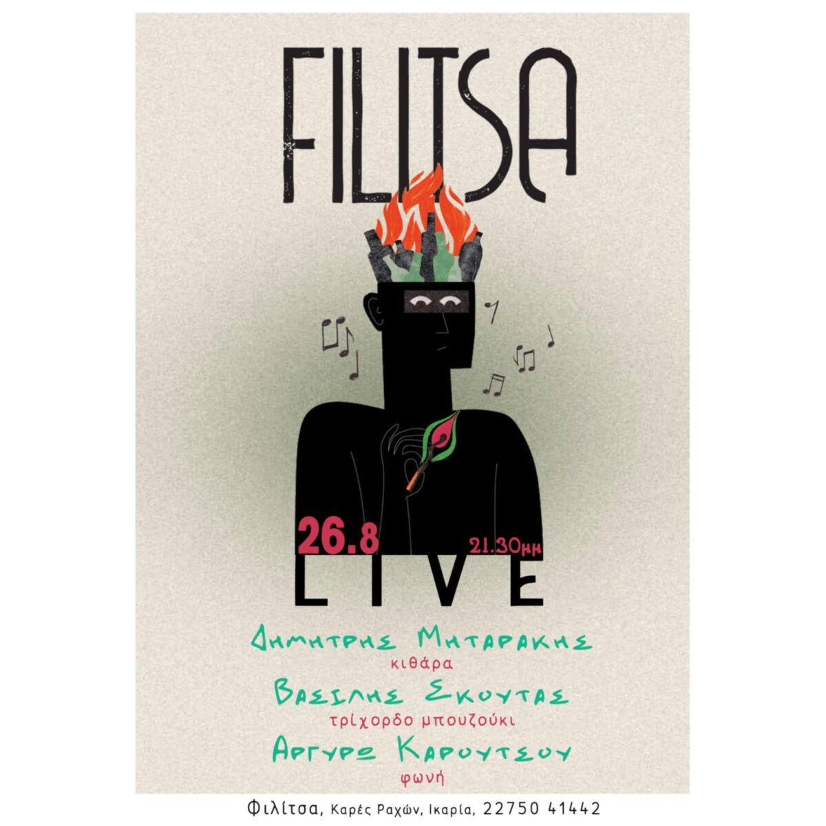 Σήμερα Τρίτη 26 Αυγούστου, στις 21:30, το εστιατόριο Filitsa στους Καρές Ραχών ανοίγει τις πόρτες του στη μαγεία της ζωντανής μουσικής, φιλοξενώντας τρεις ξεχωριστούς καλλιτέχνες που υπόσχονται να χαρίσουν μια βραδιά γεμάτη πάθος, συγκίνηση και αυθεντικότητα.