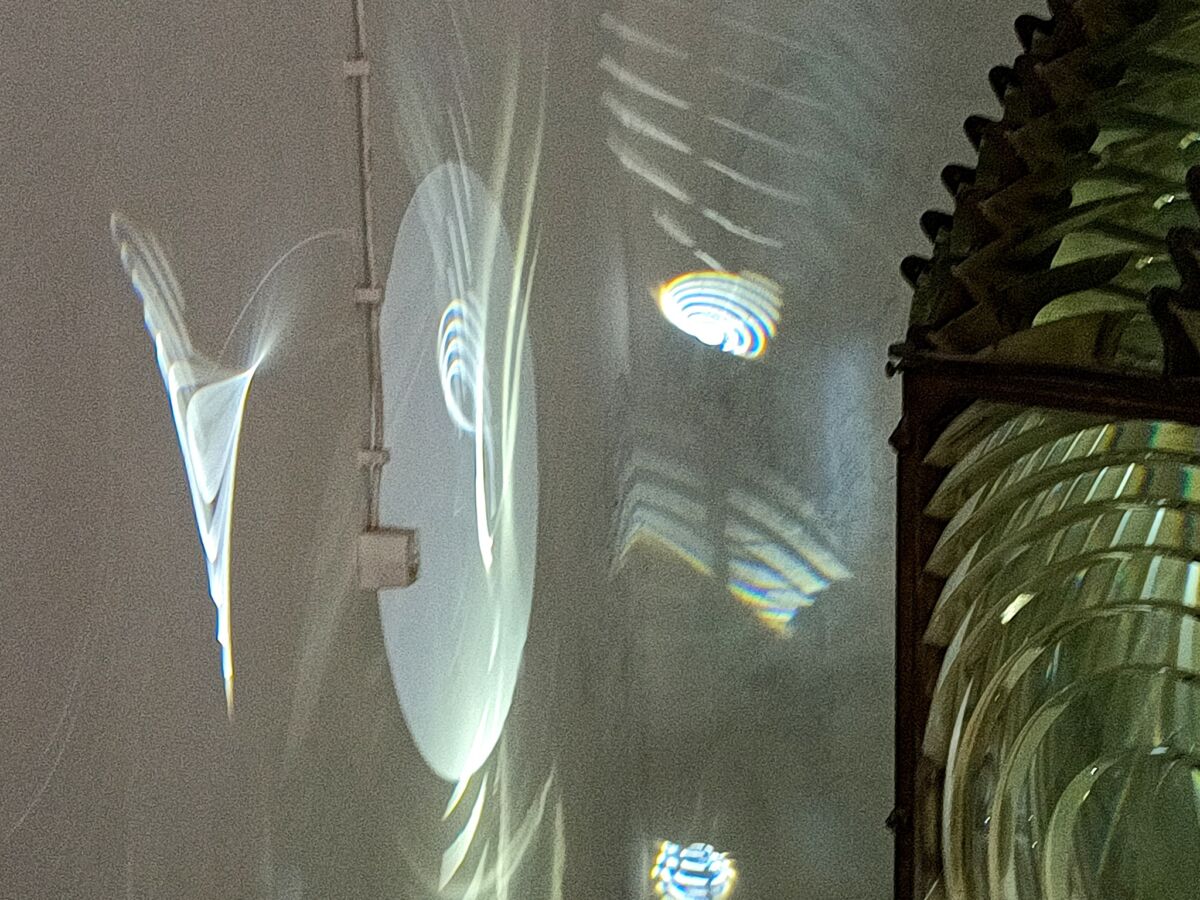 Το βράδυ εντός υαλοστασίου ο παρατηρητής έβλεπε τις δέσμες, από κάθε πλευρά του οπτικού να διαπερνούν τους υαλοπίνακες αφήνοντας επάνω τους την περιφερόμενη προβολή κάθε φωτισμένου πρίσματος.