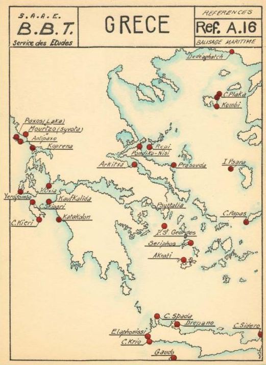 Β.Β.Τ (Barbier, Bénard et Turenne); Service des Etudes — Carte Grèce, Ref. A. 16, Balisage Maritime, Paris, n.d.