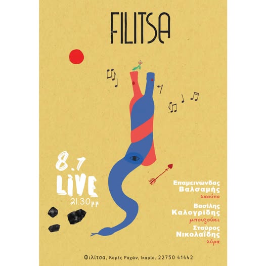 Ραντεβού σήμερα Τρίτη 8 Ιουλίου, στις 21:30, στο εστιατόριο Filitsa στις Καρές Ραχών, για ένα μοναδικό μουσικό ταξίδι γεμάτο μελωδίες και κέφι!