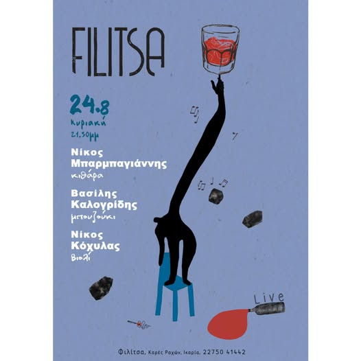 Το εστιατόριο Filitsa στις Καρές Ραχών ανοίγει την αγκαλιά του για μια ξεχωριστή καλοκαιρινή βραδιά που υπόσχεται να μείνει αξέχαστη. Την Κυριακή 24 Αυγούστου, στις 21:30, ο ήχος της κιθάρας, του μπουζουκιού και του βιολιού θα σμίξουν με το άρωμα του καλού φαγητού και την ατμόσφαιρα της ικαριώτικης φιλοξενίας.