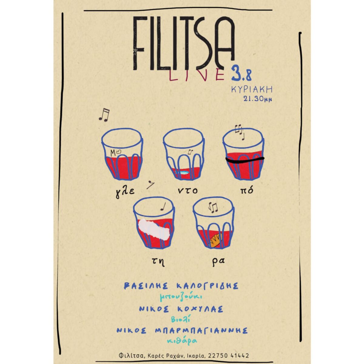Για περισσότερες πληροφορίες και κρατήσεις καλέστε στο τηλέφωνο 22750 41442 ή αφήστε μήνυμα στο e-mail: filitsarestaurant@gmail.com