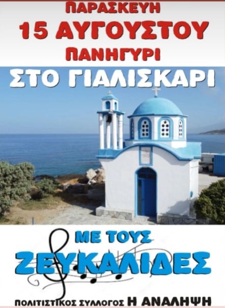 Στο ειδυλλιακό λιμανάκι του Γιαλισκαρίου, εκεί όπου τα κύματα σμίγουν με τα αρώματα της ικαριώτικης φύσης, θα πραγματοποιηθεί την Παρασκευή 15 Αυγούστου το καθιερωμένο πανηγύρι της Παναγιάς, το οποίο διοργανώνει ο Εξωραϊστικός και Εκπολιτιστικός Σύλλογος Γιαλισκαρίου Ικαρίας «Η Ανάληψις», που κάθε χρόνο φροντίζει να κρατά ζωντανή αυτή την αγαπημένη καλοκαιρινή παράδοση.