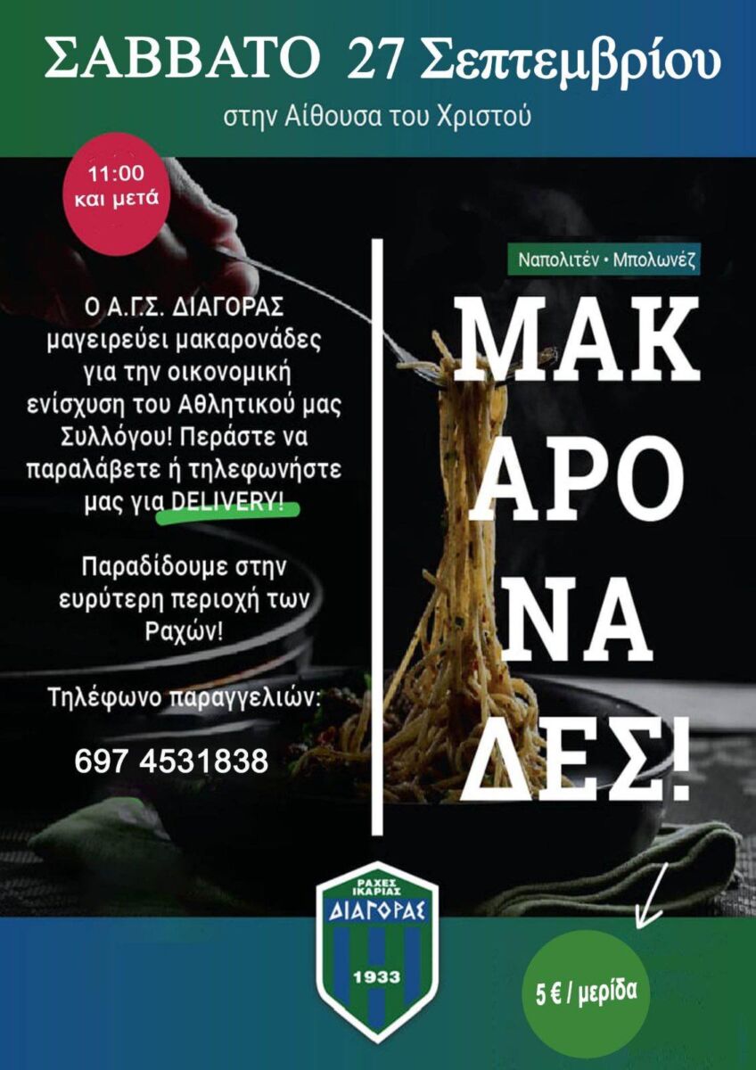 Ένα πιάτο μακαρονάδα, μια κίνηση στήριξης στον Διαγόρα!