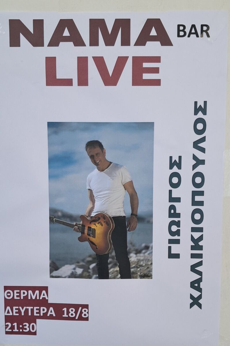 Το αγαπημένο στέκι δίπλα στη θάλασσα και τις ιαματικές πηγές σας περιμένει με μουσική, μοναδικά cocktails και καλοκαιρινή διάθεση. Τη Δευτέρα 18 Αυγούστου στις 9:30 το βράδυ, ο Γιώργος Χαλκιόπουλος ζωντανά στο Nama Bar, στα Θέρμα Ικαρίας.